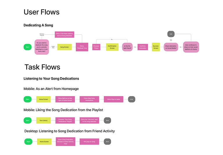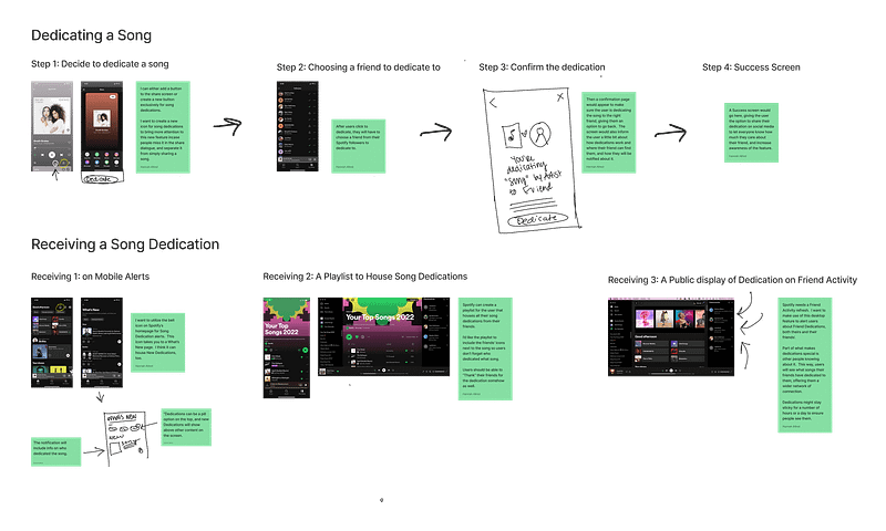 I created a Song Dedication feature on Spotify that would allow users to not only share music internally on the app, but allow them to make their friends feel special.