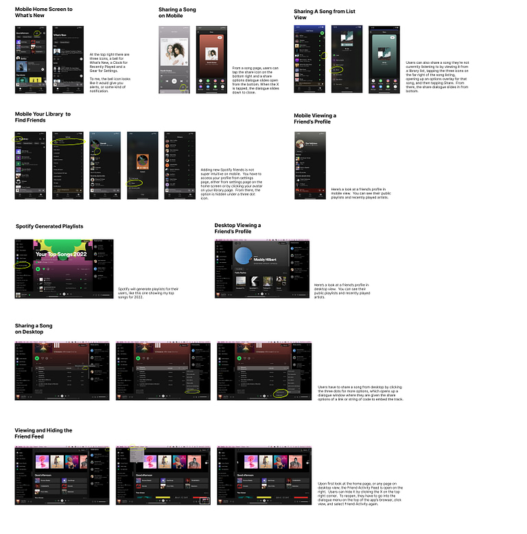 I interviewed five Spotify users to learn about their music-sharing habits, their thoughts on Spotify’s social features, and what they thought about song dedications themselves in order to confirm this would be a feature users would use and enjoy.