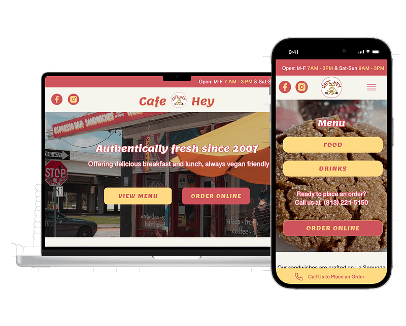 I wrote copy to inform users about Cafe Hey during their web experience. It put the cafe’s unique business value front and center to appeal to both new customers and regulars.